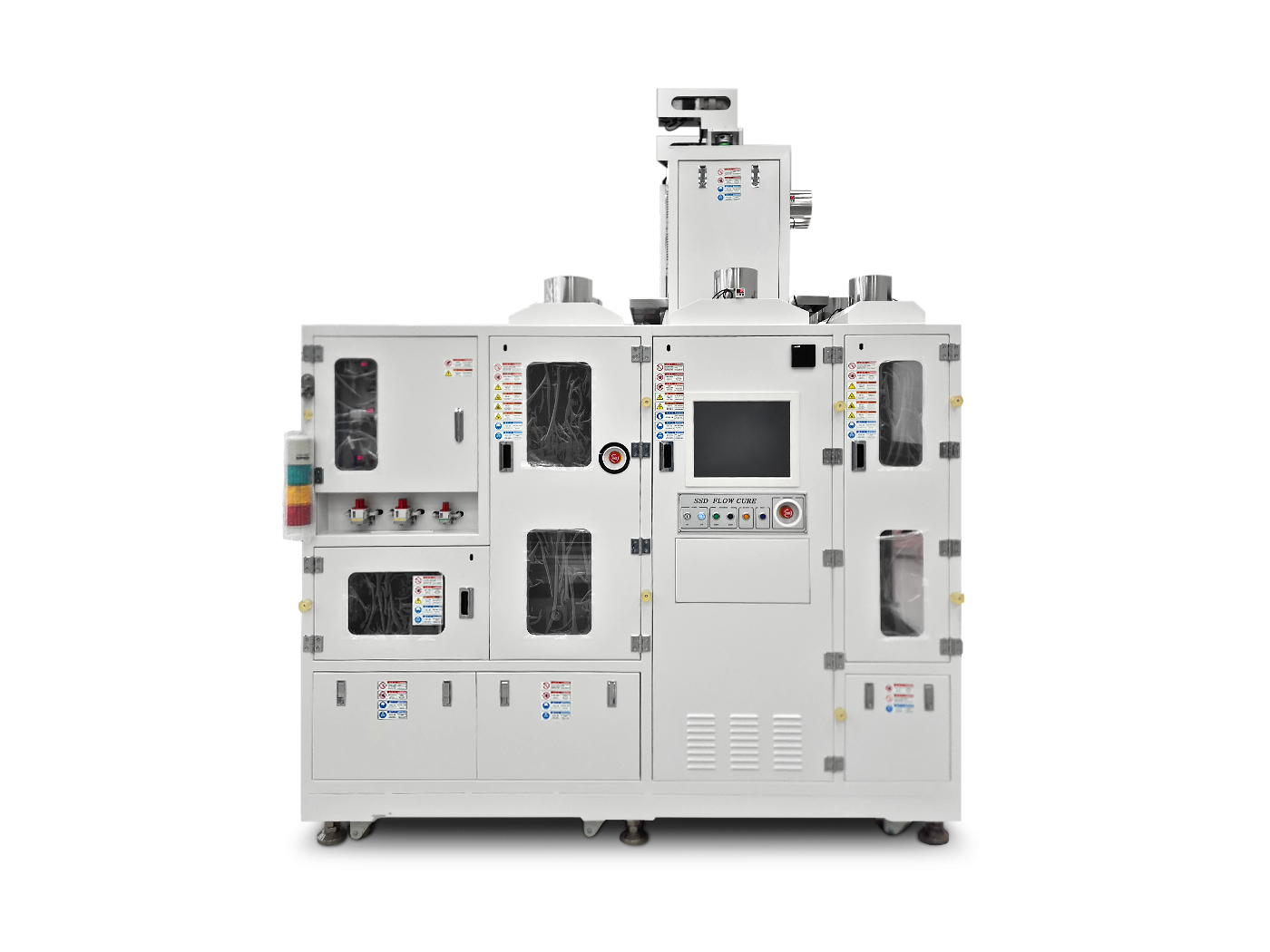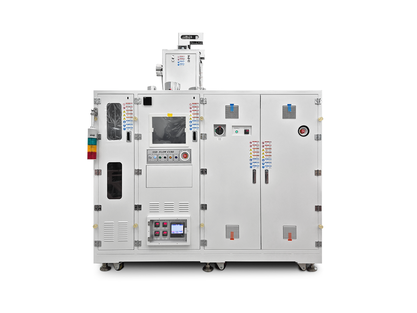 기존 Cure(Bake)공정을 수동에서 자동화로 구현하여 시료의 투입부터 Cure(Bake), Cooling 배출까지 완전 무인운용 가능, 상위 통신 및 FDC 제어 가능한 장비 앞,뒤 설비와 IN-LINE 운용 가능 (Interface지원)